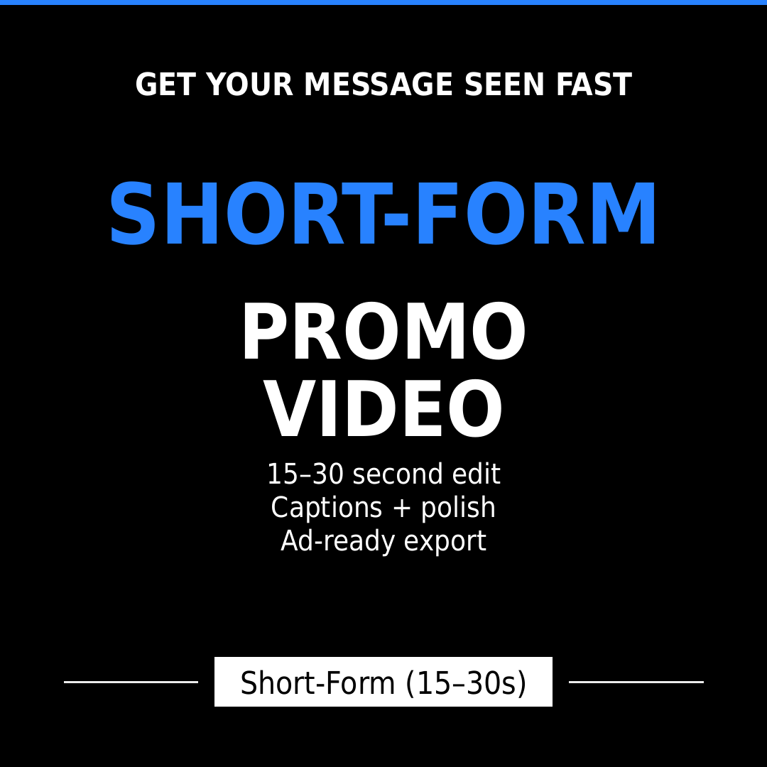 This service focuses on video editing and creative assembly, not on-site filming or production. You provide the assets, and we turn them into polished, platform-ready video creatives.